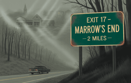 The sign wasn’t on any of their GPS maps. EXIT 17 – MARROW’S END – 2 MILES It flickered once as they passed, rusted letters glowing weakly against the dusk sky. No logos. No chain gas stations. Just the name, and the number. “Anyone else see that?” Harper asked from the passenger seat, twisting in her seat to look back. Jace grinned from behind the wheel. “Definitely haunted.”