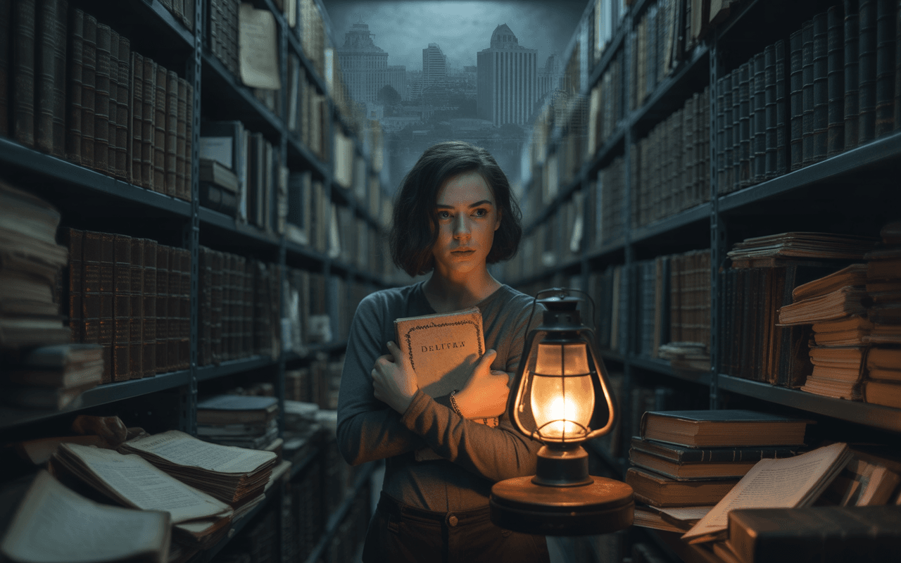 Clara adjusted her glasses as the fluorescent light flickered faintly overhead, casting a sterile glow over the cavernous room. Rows upon rows of metal shelves stretched into the shadows, their contents buried in decades of dust and silence. The city archives were a place forgotten by time, a sanctuary for relics that no one wanted to remember but everyone was required to preserve.